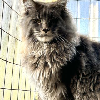 Il est brown blotched tabby. C’est un grand chat de 10kgs, avec un excellent look, et une forte ossature.